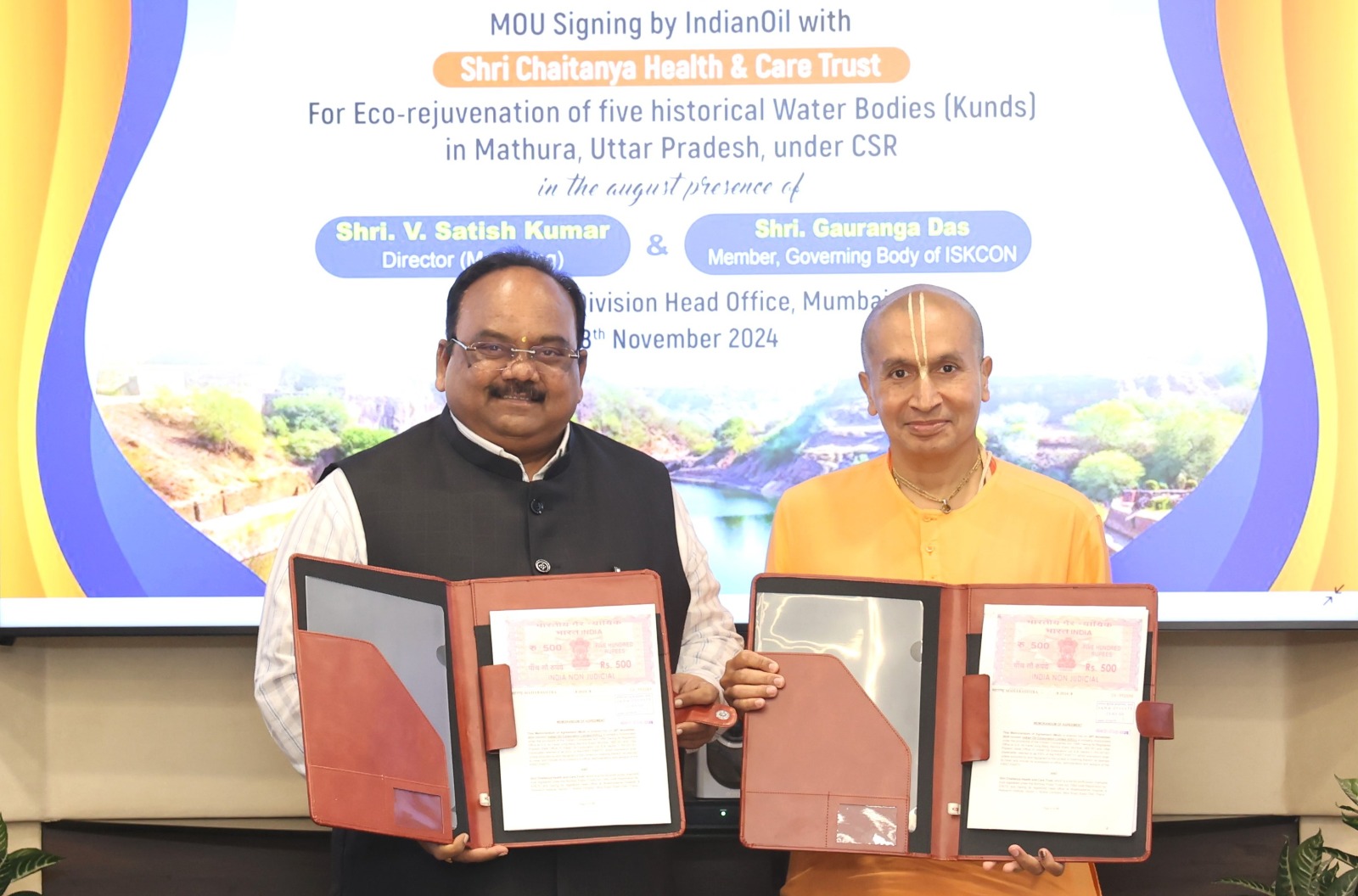 मुंबई। पर्यावरण संरक्षण और सांस्कृतिक विरासत के संरक्षण के लिए इंडियन ऑयल ने एक ऐतिहासिक कदम उठाते हुए मथुरा में स्थित पांच प्रमुख जल निकायों के पारिस्थितिकी कायाकल्प के लिए श्री चैतन्य हेल्थ एंड केयर ट्रस्ट (SCHCT) के साथ समझौता ज्ञापन (MoU) पर हस्ताक्षर किए हैं। यह पहल कॉर्पोरेट सामाजिक जिम्मेदारी (CSR) के तहत इंडियन ऑयल की सतत विकास के प्रति प्रतिबद्धता को दर्शाती है।