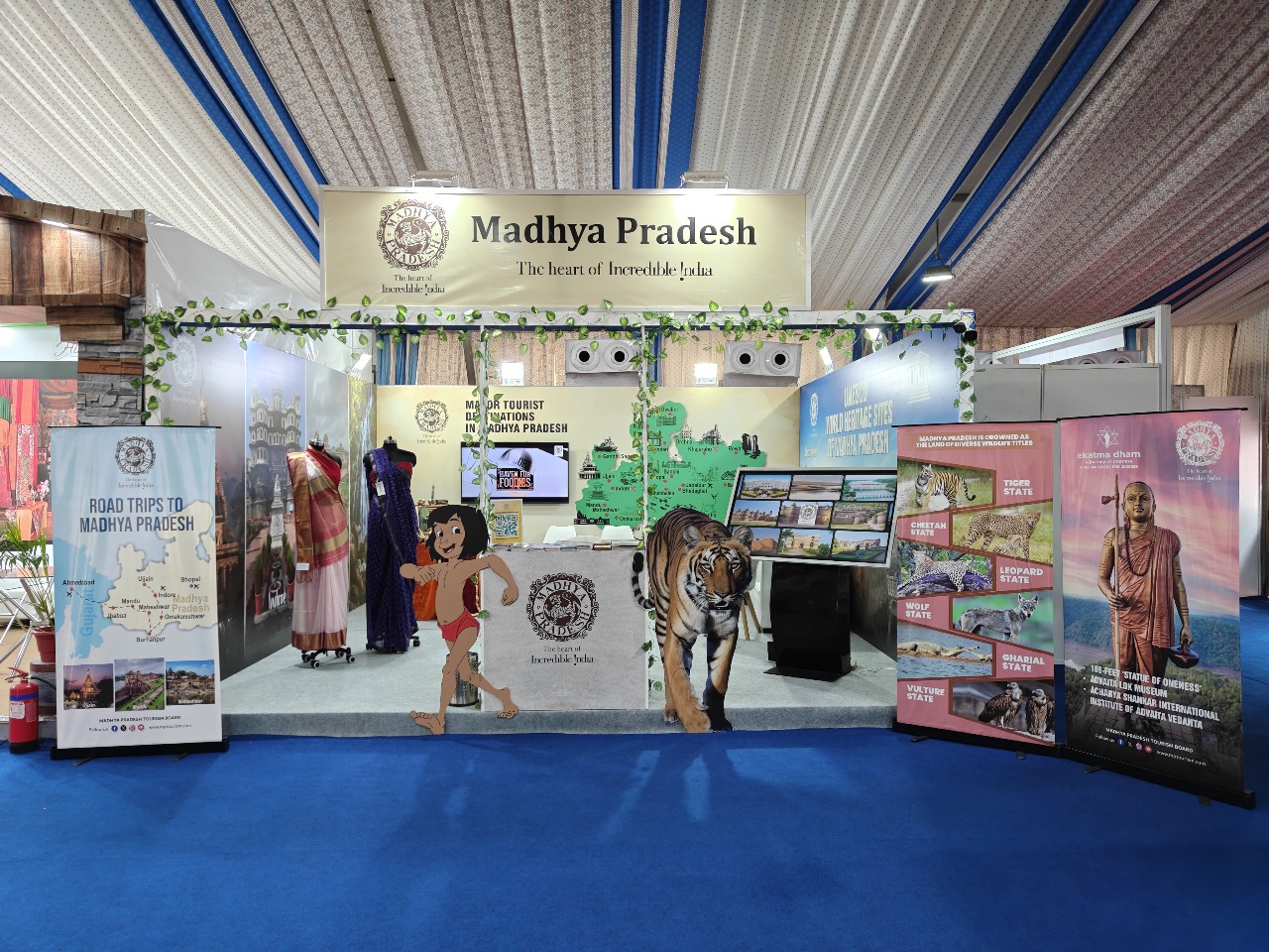 साथ ही, कान्हा, पेंच और बांधवगढ़ राष्ट्रीय उद्यानों की प्राकृतिक सुंदरता, और चंदेरी, महेश्वरी वस्त्र, गोंड पेंटिंग, डोकरा कला, बाघ प्रिंट जैसे हस्तशिल्पों से ‘हृदय प्रदेश’ की पहचान को जीवंत किया गया है।