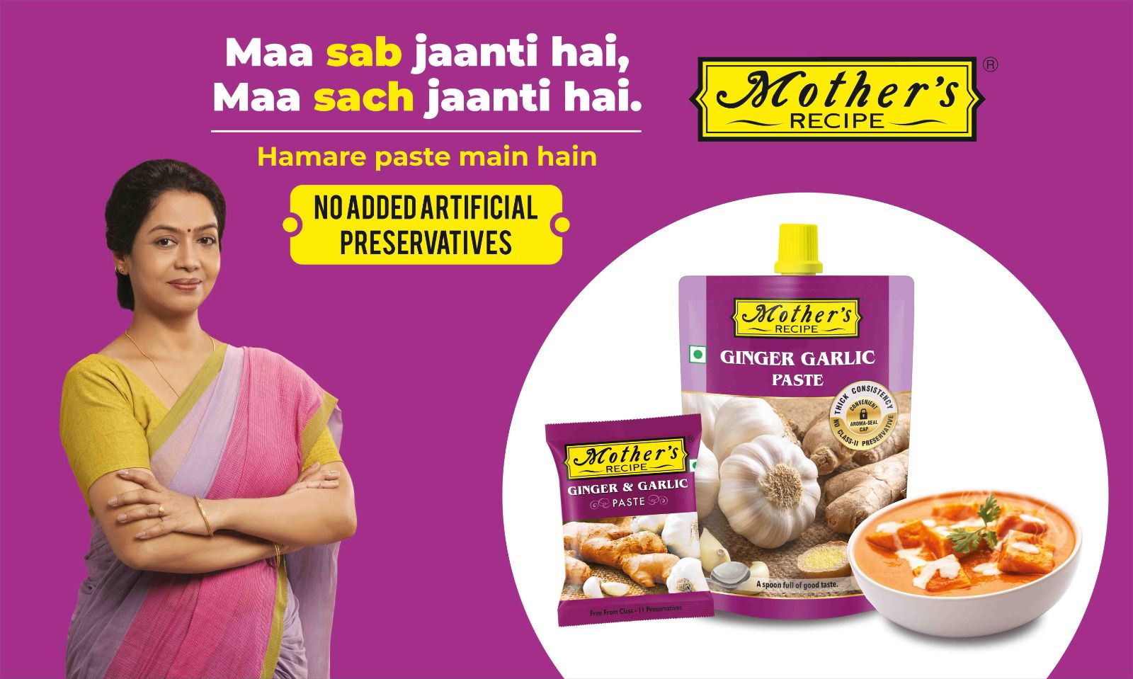 मदर्स रेसिपी की एग्जीक्यूटिव डायरेक्टर संजना देसाई ने कहा कि हर माँ जानती है कि कौन-सी चीज़ सही है। हमारा जिंजर-गार्लिक पेस्ट भी उसी सच्चाई और ईमानदारी से बनाया जाता है। इसमें कोई शॉर्टकट नहीं सिर्फ शुद्ध अदरक और लहसुन, बिल्कुल वैसे जैसे घरों में माताएँ बनाती हैं।
