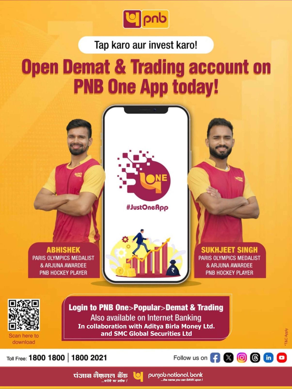 पीएनबी के मुख्य महाप्रबंधक, श्री बिनय कुमार गुप्ता ने कहा, ” “हम समग्र निवेश अनुभव में नवाचार और सुधार के लिए प्रतिबद्ध हैं। बैंक के ट्रेडिंग भागीदारों, आदित्य बिड़ला मनी लिमिटेड और एसएमसी ग्लोबल सिक्योरिटीज लिमिटेड के सहयोग से हमारी एकीकृत डीमैट खाता और ट्रेडिंग खाता खोलने की सुविधा का उद्देश्य निवेशकों को उनके वित्तीय लक्ष्यों को प्राप्त करने में सक्षम बनाना है।”