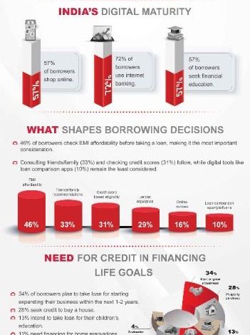उधारकर्ता अब भावनाओं पर नहीं, बल्कि तर्क और तुलना के आधार पर निर्णय ले रहे हैं 46%, पहले EMI की वहनीयता देखते हैं। 33%, परिवार/मित्र से सलाह लेते हैं 31%, क्रेडिट स्कोर चेक करते हैं