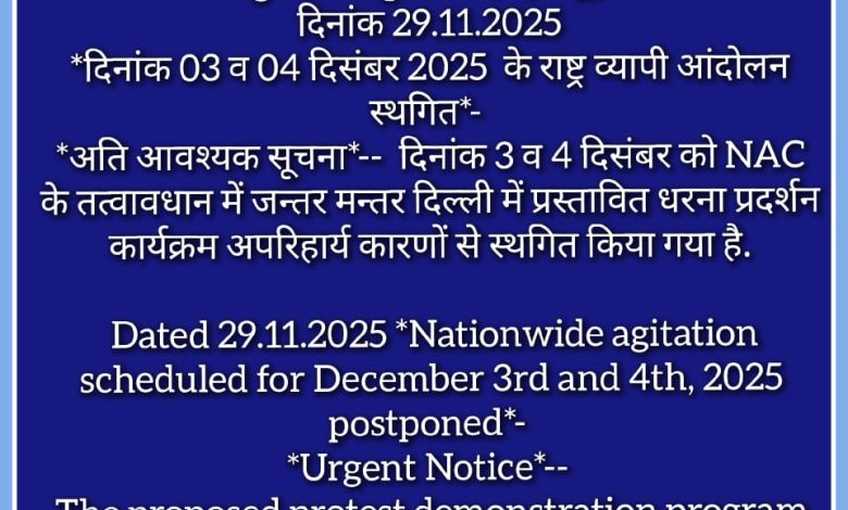 दिल्ली में EPS-95 पेंशनर्स का आंदोलन स्थगित: 3–4 दिसंबर के धरने को अनुमति न मिलने पर टला प्रदर्शन