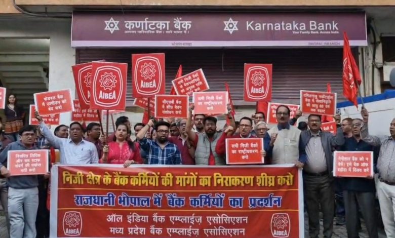 भोपाल में बैंक कर्मचारियों ने किया प्रभावी प्रदर्शन, सरकार को 10 दिसंबर तक अल्टीमेटम