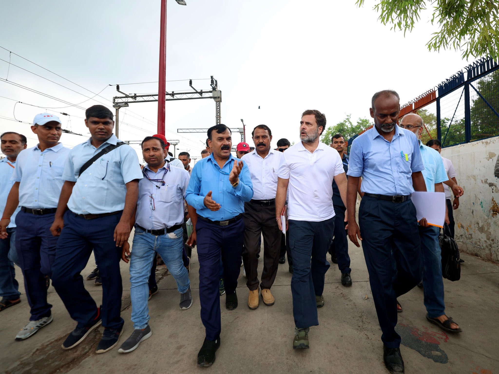 राहुल गांधी ने नई दिल्ली रेलवे स्टेशन पर लोको पायलट्स से की मुलाकात