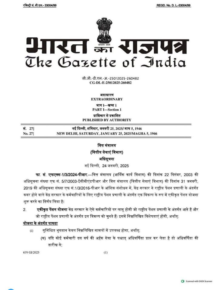 यह योजना 1 अप्रैल 2025 से लागू होगी और सरकार की ओर से कर्मचारी हितों की दिशा में एक महत्वपूर्ण पहल मानी जा रही है।