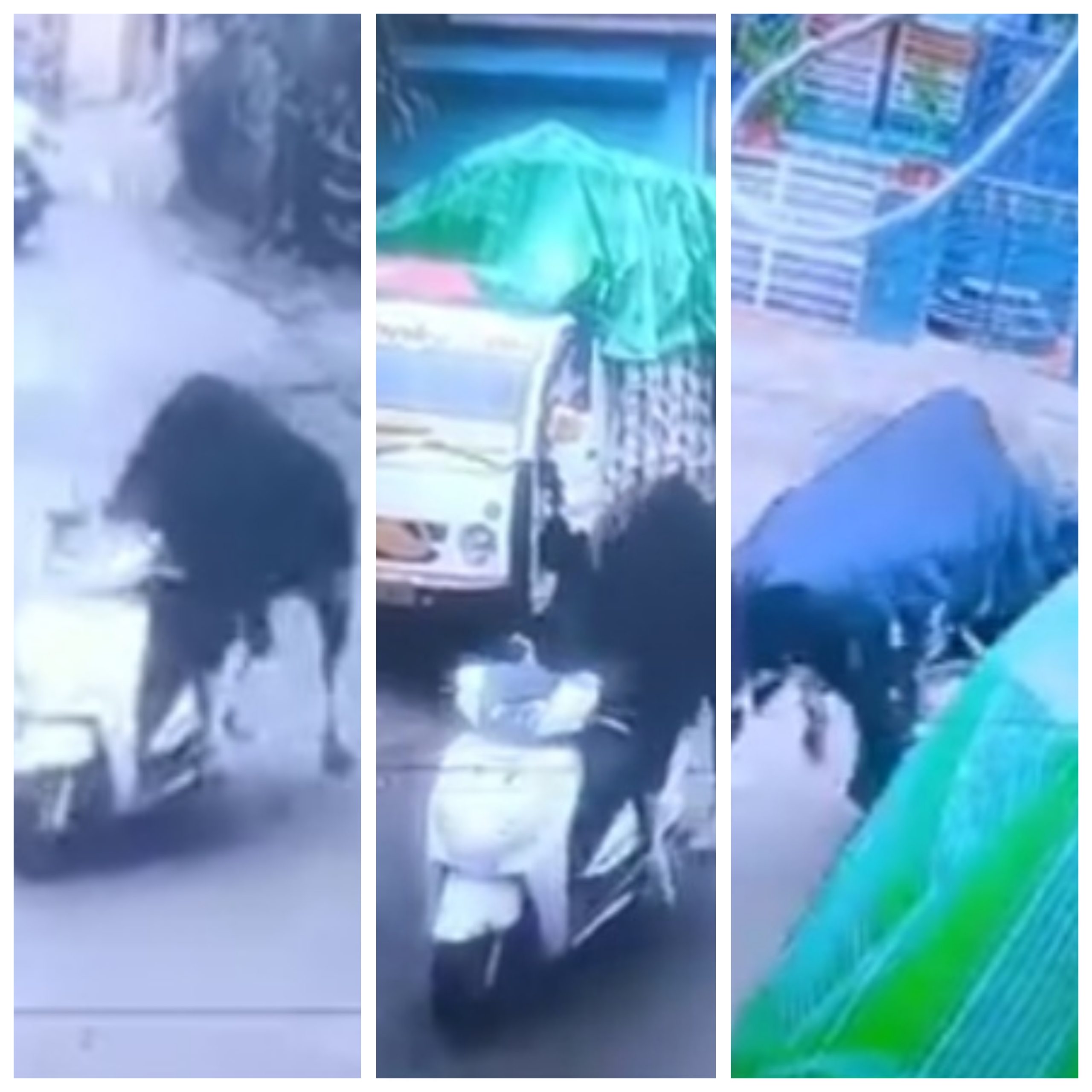 स्कूटी पर आया सांड का गुस्सा, फिर किया ‘चोरी’ जैसा बर्ताव