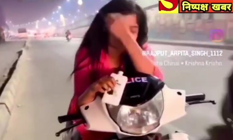 हाथ में जाम, पुलिस लिखी स्कूटी पर मस्ती करती युवती का वीडियो वायरल, लखनऊ एक्सप्रेसवे पर हड़कंप