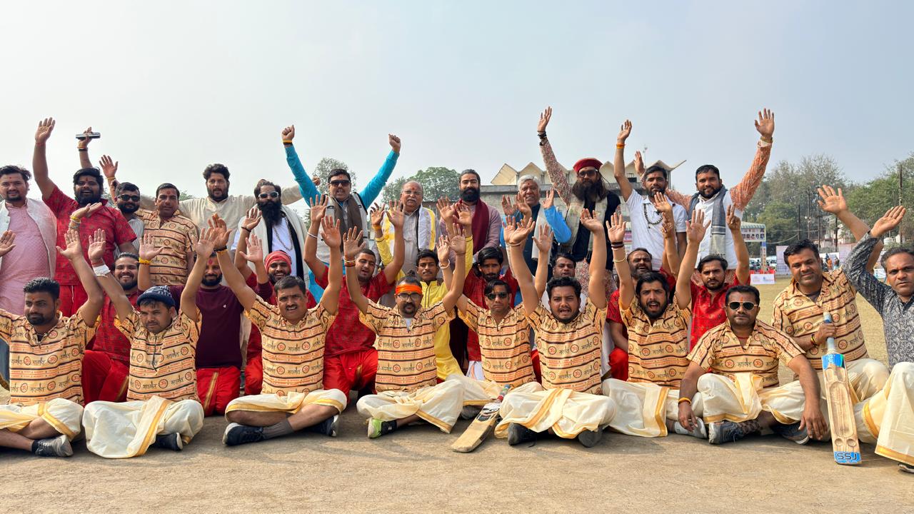 मैच के दौरान जैसे-जैसे चौके-छक्के लगते गए, पूरा मैदान “हर-हर महादेव” और “श्री राम जय राम जय जय राम” के जयघोष से गूंज उठा। इससे माहौल भक्तिमय और जोश से भरपूर हो गया।
