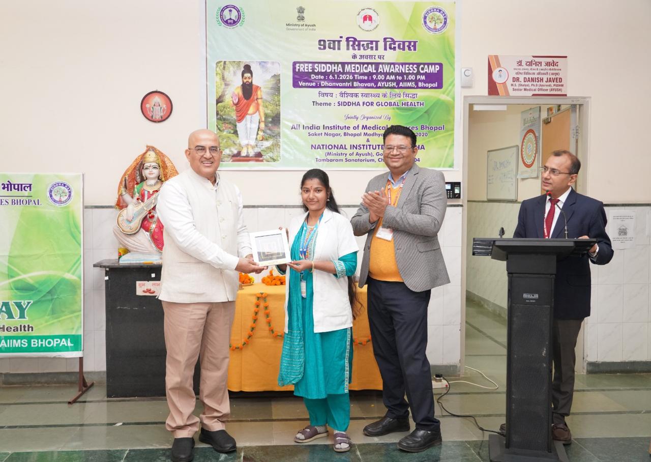 भोपाल। अखिल भारतीय आयुर्विज्ञान संस्थान (एम्स) भोपाल का आयुष विभाग पारंपरिक चिकित्सा पद्धतियों को आम नागरिकों के लिए सरल, सुलभ और प्रभावी बनाने की दिशा में निरंतर कार्य कर रहा है। इसी क्रम में 6 जनवरी 2026 को एम्स भोपाल में “वैश्विक स्वास्थ्य के लिए सिद्ध” थीम के साथ 9वां सिद्ध दिवस हर्षोल्लास के साथ मनाया गया। यह दिवस सिद्ध चिकित्सा के जनक सिद्धर अगस्त्यर की जयंती के उपलक्ष्य में प्रतिवर्ष आयोजित किया जाता है।