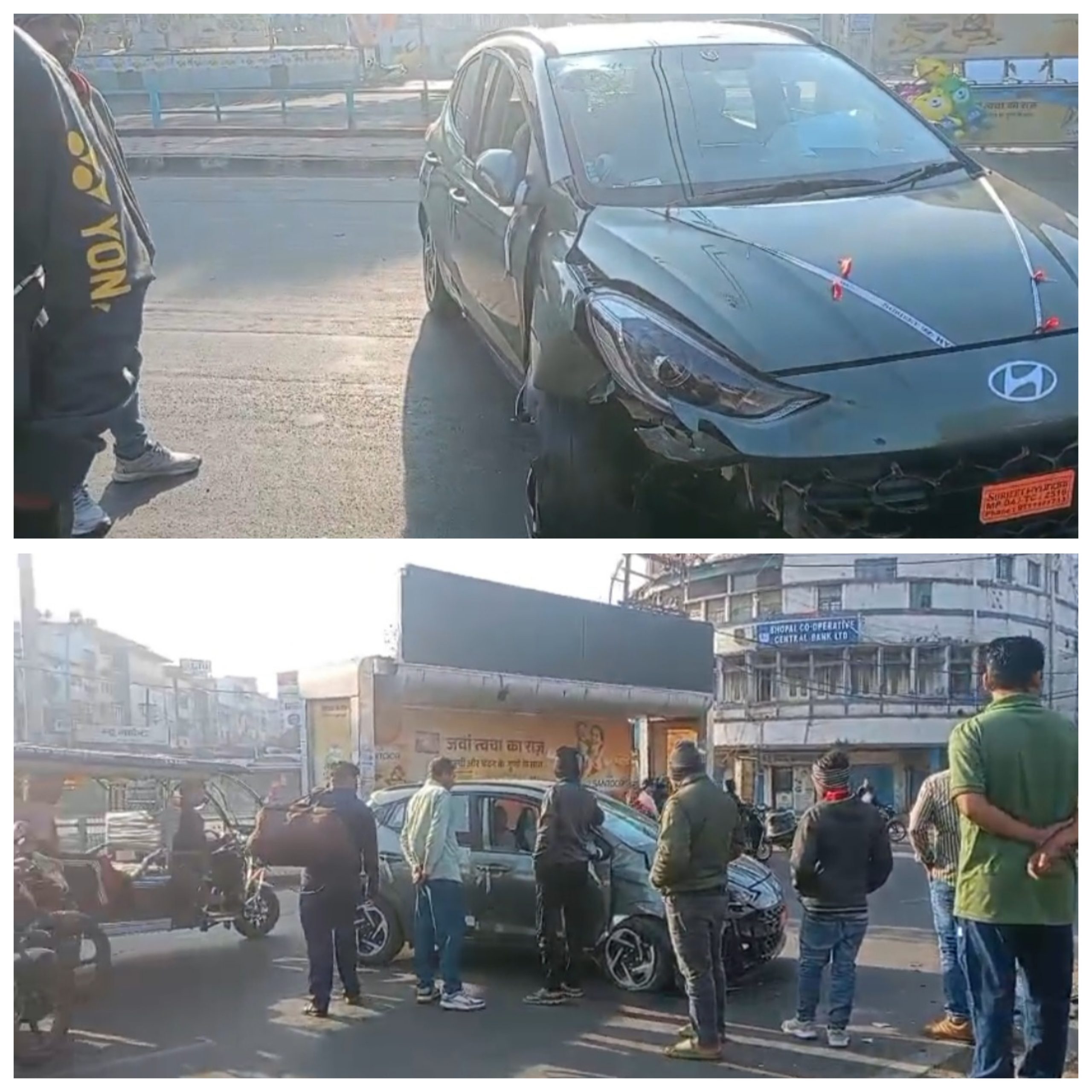 भोपाल । राजधानी के न्यू मार्केट टीटी नगर क्षेत्र में आज सुबह लगभग 8:00 बजे एक बड़ा सड़क हादसा होने से सनसनी फैल गई। क्वालिटी रेस्टोरेंट के सामने तेज रफ्तार हुंडई कार अचानक अनियंत्रित होकर डिवाइडर से जा टकराई। राहत की बात यह रही कि हादसे में किसी व्यक्ति को कोई चोट नहीं आई, हालांकि कार को भारी नुकसान पहुंचा है।