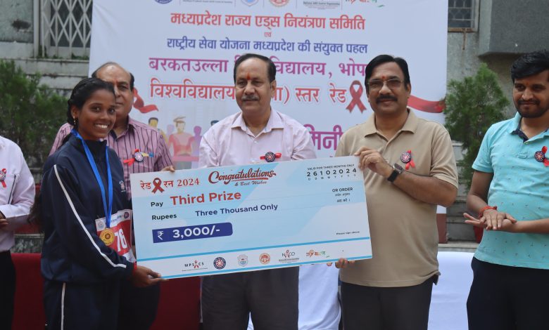 भोपाल: मध्यप्रदेश एड्स नियंत्रण समिति, नाको और राज्य शासन के उच्च शिक्षा विभाग के सहयोग से रेड रन मैराथन का आयोजन 26 अक्टूबर को बरकतउल्ला विश्वविद्यालय (BSSS महाविद्यालय) में किया गया। इस मैराथन का उद्देश्य युवाओं में एचआईवी/एड्स के प्रति जागरूकता फैलाना और समाज में इसके प्रति संवेदनशीलता बढ़ाना था।