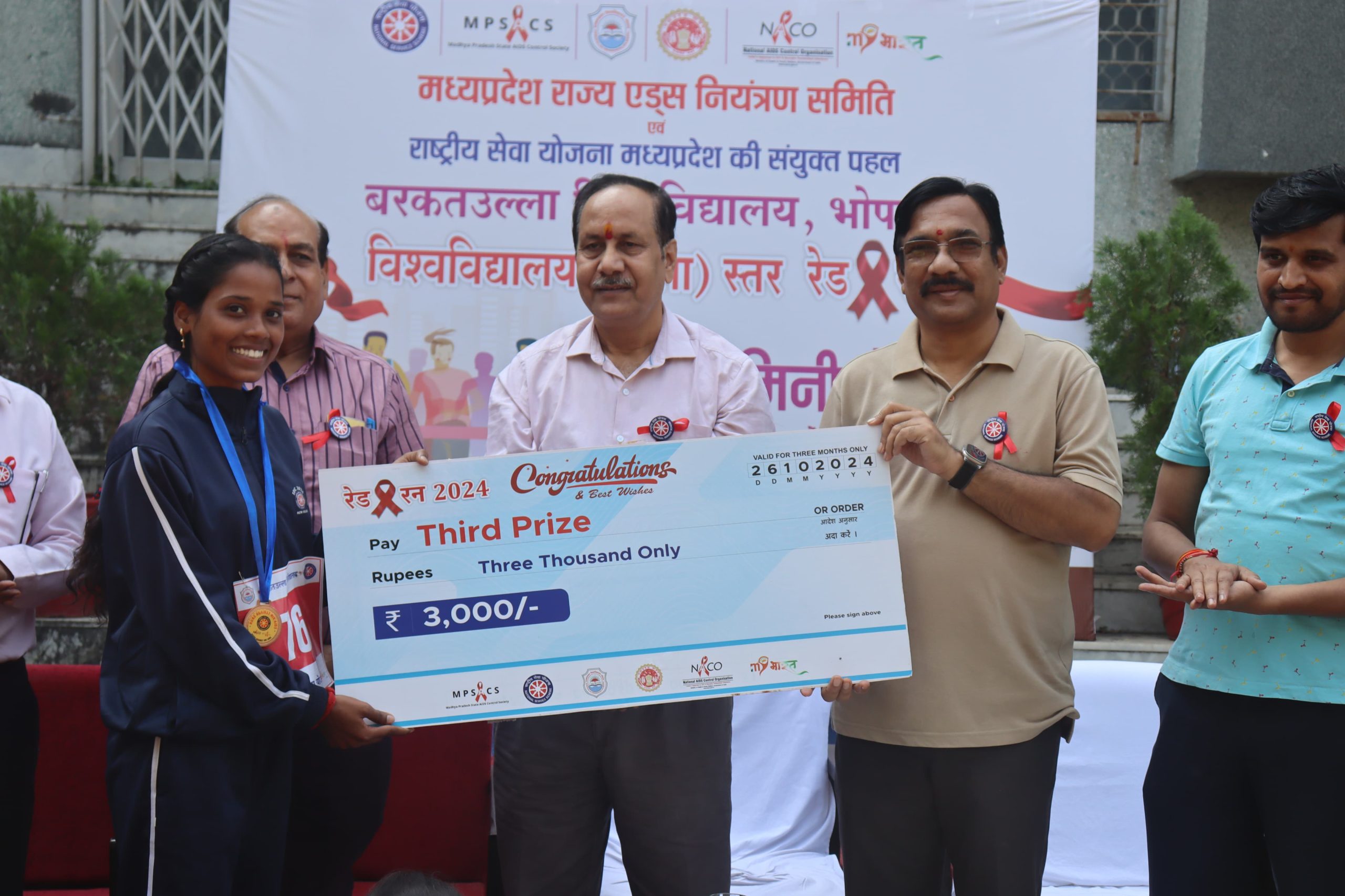 भोपाल: मध्यप्रदेश एड्स नियंत्रण समिति, नाको और राज्य शासन के उच्च शिक्षा विभाग के सहयोग से रेड रन मैराथन का आयोजन 26 अक्टूबर को बरकतउल्ला विश्वविद्यालय (BSSS महाविद्यालय) में किया गया। इस मैराथन का उद्देश्य युवाओं में एचआईवी/एड्स के प्रति जागरूकता फैलाना और समाज में इसके प्रति संवेदनशीलता बढ़ाना था।