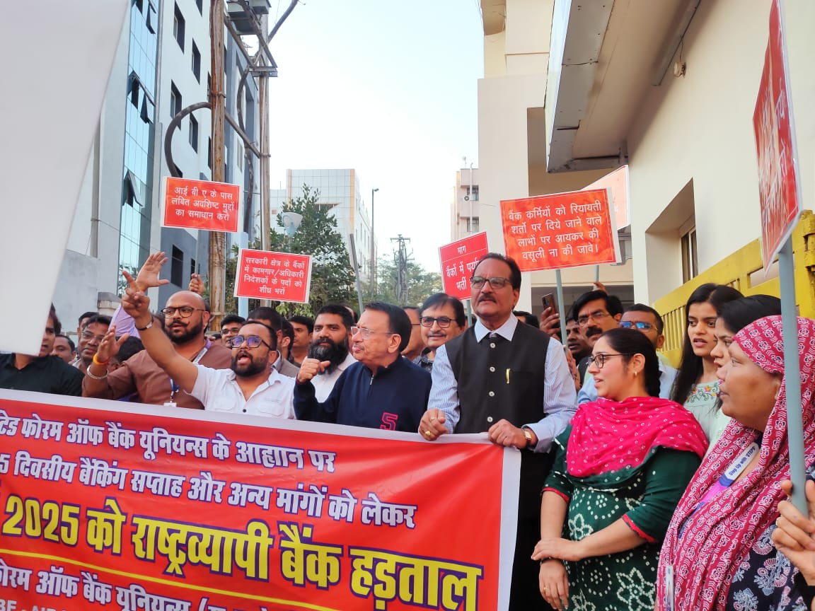 बैंक हड़ताल 2025: कर्मचारियों की मांगों को लेकर प्रभावी प्रदर्शन और सभा