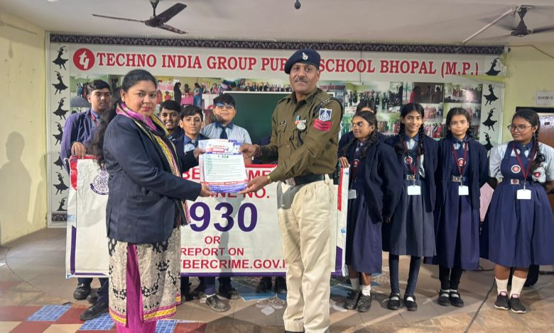भोपाल। महिला थाना नगरीय पुलिस भोपाल द्वारा मुस्कान अभियान के तहत लगातार जागरूकता कार्यक्रम आयोजित किए जा रहे हैं। इसी क्रम में टेक्नो इंडिया ग्रुप पब्लिक स्कूल, पटेल नगर में छात्र–छात्राओं और शिक्षकों के लिए विशेष साइबर सुरक्षा जागरूकता कार्यक्रम आयोजित किया गया।यह कार्यक्रम पुलिस आयुक्त पुलिस उपमहानिरीक्षक (मुख्यालय) के आदेशों के पालन में तथा वरिष्ठ अधिकारियों के निर्देशन में आयोजित किया गया। कार्यक्रम का संचालन महिला थाना प्रभारी श्रीमती अंजना दुबे के मार्गदर्शन में हुआ।