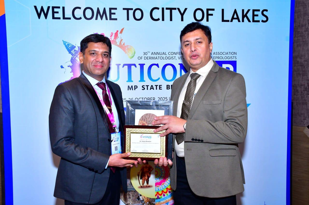 भोपाल, । अखिल भारतीय आयुर्विज्ञान संस्थान (AIIMS) भोपाल ने एक बार फिर शैक्षणिक और शोध क्षेत्र में अपनी उत्कृष्टता का परचम लहराया है। संस्थान के त्वचा रोग विभाग (Department of Dermatology) ने इंडियन एसोसिएशन ऑफ डर्मेटोलॉजिस्ट्स, वेनेरियोलॉजिस्ट्स एंड लेप्रोलॉजिस्ट्स (IADVL) द्वारा आयोजित स्टेट क्युटिकॉन 2025 सम्मेलन में शानदार प्रदर्शन किया। यह राज्यस्तरीय वैज्ञानिक सम्मेलन 25 और 26 अक्टूबर 2025 को भोपाल में संपन्न हुआ।