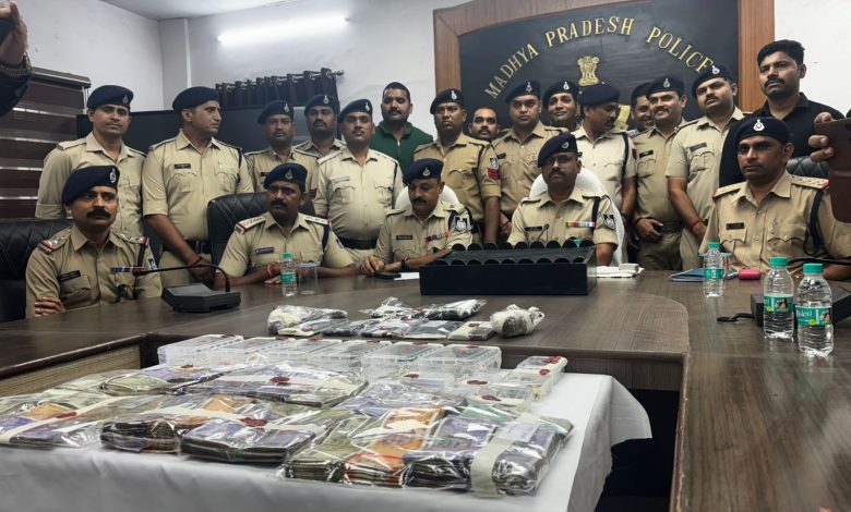 भोपाल/मुरैना । थाना स्टेशन रोड क्षेत्र के मुडियाखेड़ा बायपास, अम्बाह रोड निवासी एक मावा व्यापारी के घर हुई डकैती का खुलासा मुरैना पुलिस ने शानदार तरीके से किया है। पुलिस ने न केवल 7 आरोपियों को पकड़ा, बल्कि उनसे 5 तोला सोना, 750 ग्राम चांदी, 4,53,750 रुपए नकद, एक हुंडई औरा कार (8 लाख रुपए), दो देशी कट्टे, चार जिंदा कारतूस और पांच मोबाइल फोन बरामद किए।