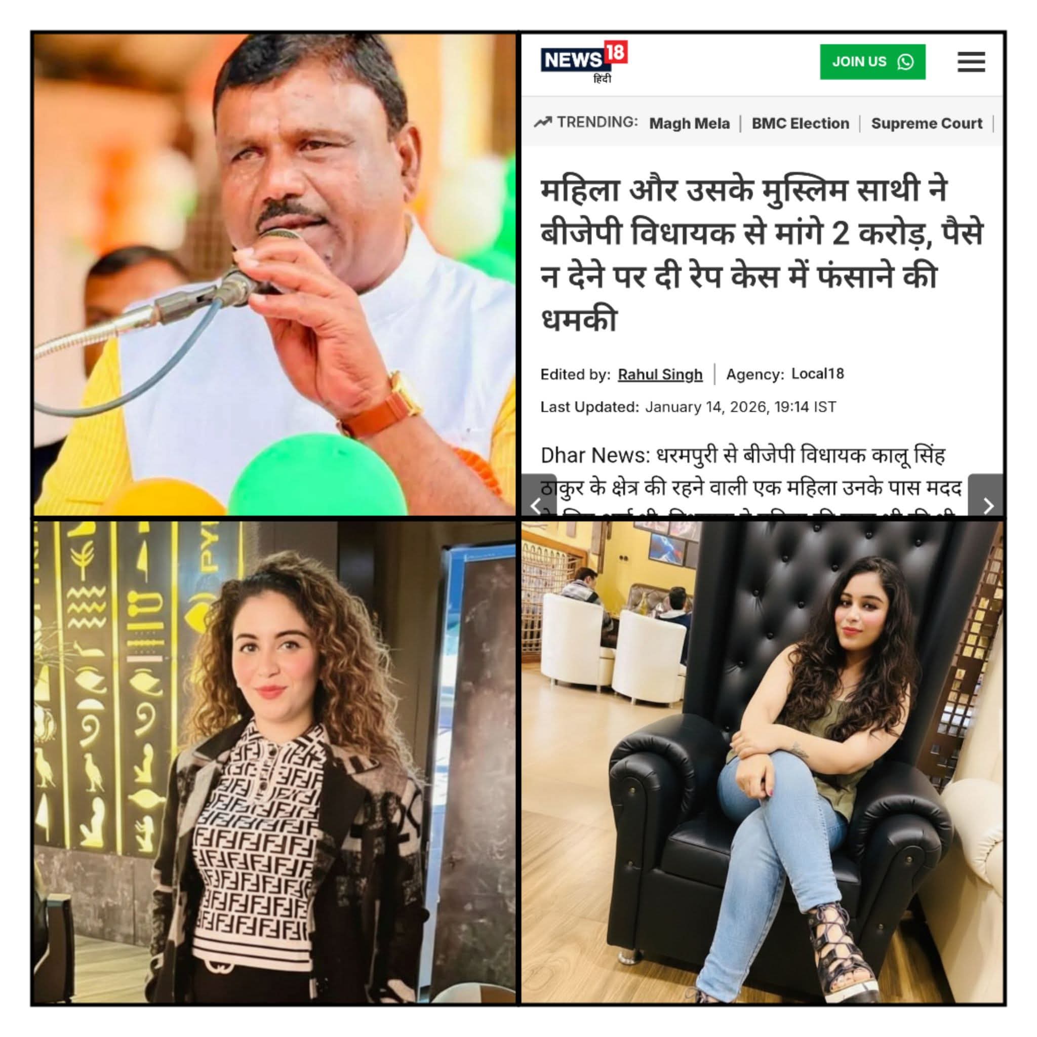 धार (मध्य प्रदेश): मध्य प्रदेश की राजनीति में एक सनसनीखेज मामला सामने आया है। धार जिले की धरमपुरी विधानसभा सीट से भाजपा विधायक कालू सिंह ठाकुर पर हनी ट्रैप का जाल बिछाने का गंभीर मामला उजागर हुआ है। विधायक की शिकायत पर पुलिस ने एक महिला और उसके साथी के खिलाफ मुकदमा दर्ज कर जांच शुरू कर दी है।