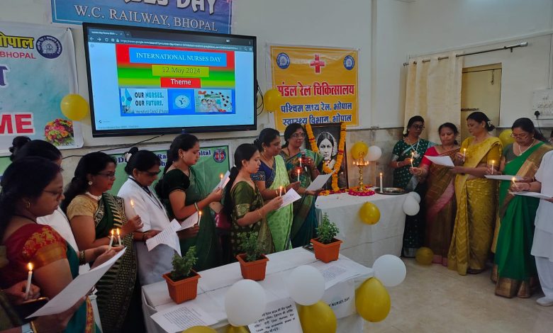 भोपाल: नर्सिंग पेशे की अद्वितीय भूमिका और नर्सों के अनुपम योगदान को सम्मानित करते हुए, भोपाल के मण्डल रेल चिकित्सालय ने 12 मई, 2024 को अंतर्राष्ट्रीय नर्स दिवस का आयोजन किया। इस विशेष दिन को नर्सिंग के प्रणेता, फ्लोरेंस नाइटिंगेल के जन्मदिन के रूप में मनाया जाता है, जिसका उद्देश्य विश्व भर की नर्सों के अथक परिश्रम और समर्पण को पहचानना है।