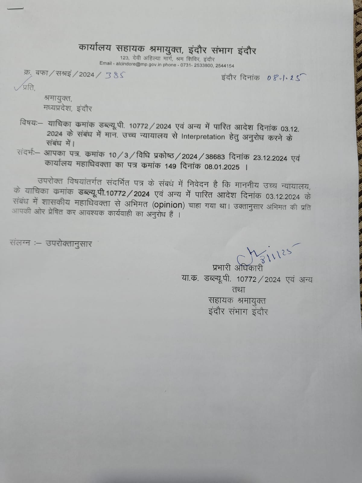 अब मध्य प्रदेश कर्मचारी मंच ने प्रदेश के श्रम आयुक्त को पत्र लिखकर मांग की है कि वेतन वृद्धि की अधिसूचना जल्द जारी की जाए।
