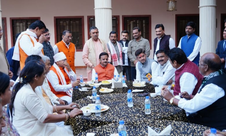 भोपाल। सागर जिले के प्रभारी और उप-मुख्यमंत्री राजेंद्र शुक्ल ने डॉ. सर हरि सिंह गौर की जयंती के अवसर पर आयोजित विभिन्न कार्यक्रमों में शामिल होने के बाद खाद्य, नागरिक आपूर्ति एवं उपभोक्ता संरक्षण मंत्री गोविंद सिंह राजपूत के निवास मातेश्वरी में पहुंचकर स्नेह भोज का आनंद लिया। इस दौरान मंत्री राजपूत और जिलेभर से आए जनप्रतिनिधियों ने उप-मुख्यमंत्री का गर्मजोशी से स्वागत किया।