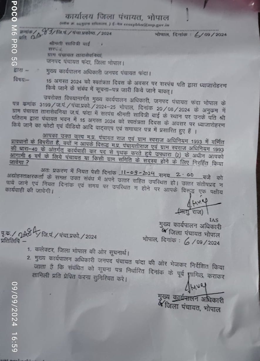 भोपाल के फंदा की तारा सेवनिया ग्राम पंचायत पर जिला पंचायत का आदेश: सरपंच पति पर कार्रवाई शुरू