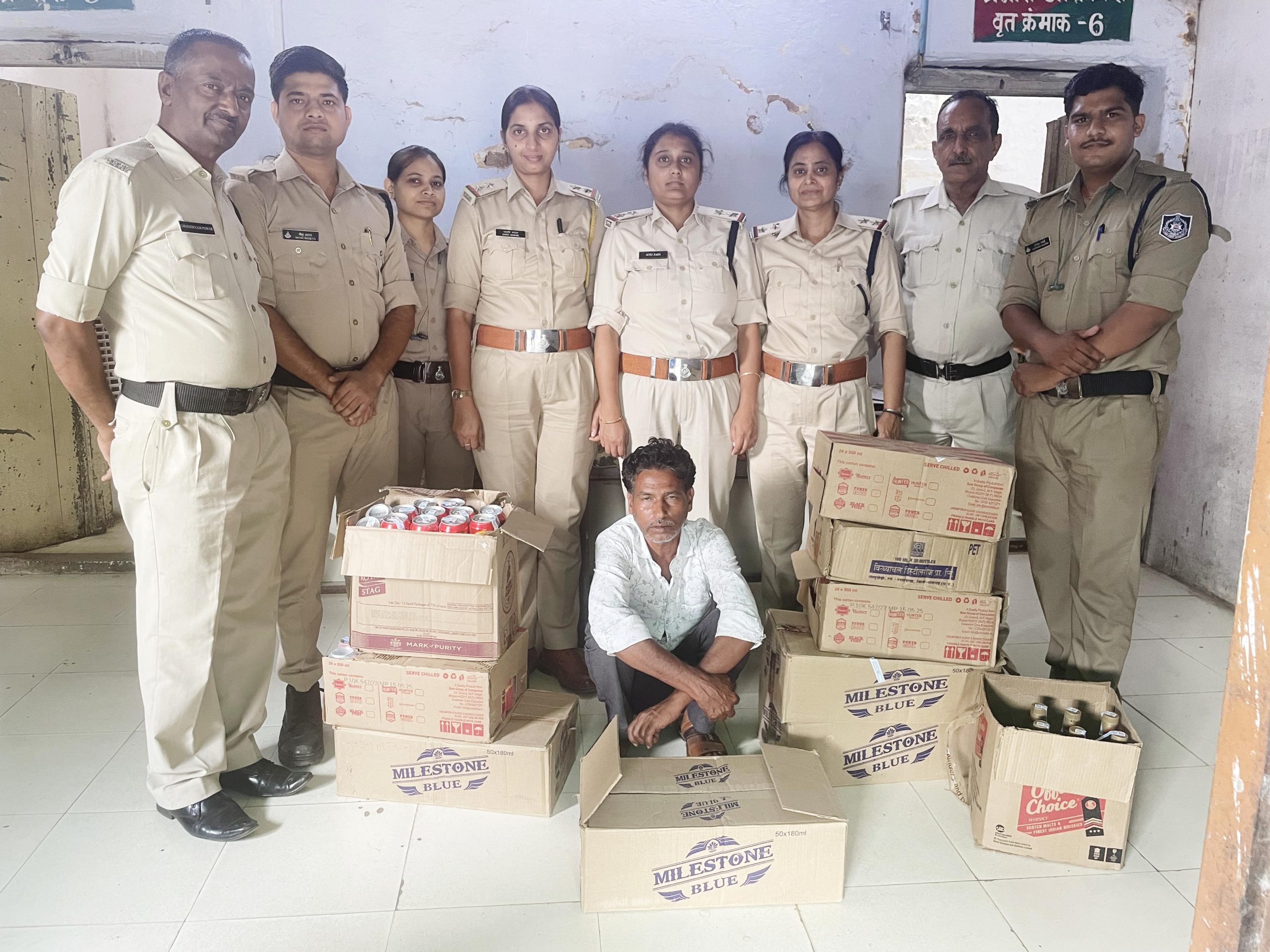 इस विशेष अभियान के तहत, परवलिया सड़क क्षेत्र में एक दुकान में अवैध रूप से शराब बेचते पाए गए आरोपी सनमान अहिरवार पिता गोगरे अहिरवार को पकड़ा गया। तलाशी के दौरान आरोपी के कब्जे से भारी मात्रा में देशी और विदेशी शराब बरामद की गई। जब्त सामग्री में शामिल है: