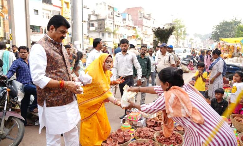 मंत्री राजपूत और उनकी पत्नी श्रीमती सविता सिंह ने मिट्टी के दीपक, हस्तनिर्मित वस्त्र और अन्य पूजा सामग्री खरीदकर न केवल स्वदेशी उत्पादों को प्रोत्साहन दिया, बल्कि छोटे व्यापारियों और कारीगरों के लिए रोजगार के अवसर भी सृजित किए। उन्होंने बताया कि लोकल फॉर वोकल से स्थानीय अर्थव्यवस्था मजबूत होती है, ग्रामीण रोजगार बढ़ता है और सांस्कृतिक विरासत संरक्षित रहती है।