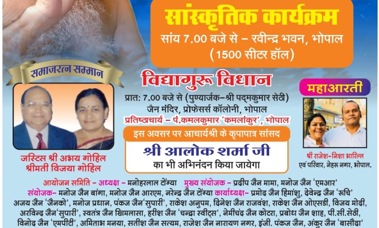 आचार्यश्री विद्यासागर जी महाराज की जयंती पर भोपाल में भव्य आयोजन: विद्या गुरु विधान और सांस्कृतिक कार्यक्रम