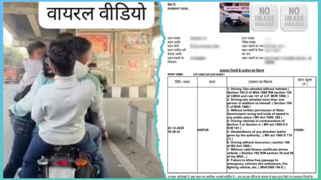 ट्रैफिक पुलिस के अनुसार, मोटरसाइकिल पर तय क्षमता से अधिक सवारी बैठाना, हेलमेट नियमों की अनदेखी, सार्वजनिक सुरक्षा को खतरे में डालना और यातायात व्यवस्था बाधित करना जैसे उल्लंघन पाए गए। इन्हीं कारणों से कुल 31 हजार रुपये का चालान लगाया गया।