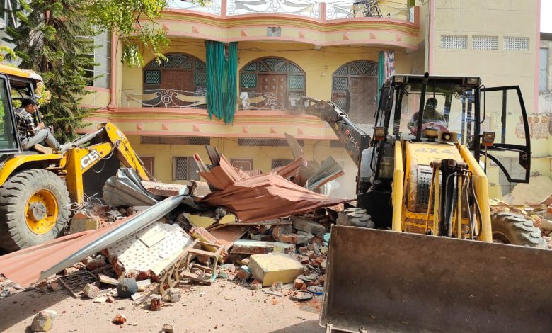 हत्या में शामिल कुख्यात बदमाश तंजील का मकान किया जमीदोज