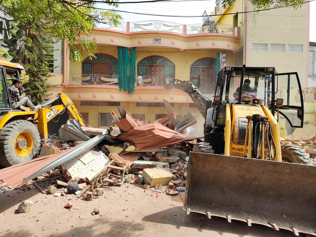 भोपाल । राजधानी में आज जिला बदर बदमाश के अवैध निर्माण कर बनाये गये मकान को प्रशासन ने हटाने की कार्यवाही की । इस दौरान क्षेत्र के एसडीएम तहसीलदार, नगर निगम का अतिक्रमण अमला भारी मात्रा में पुलिस अमला मौजूद रहा है। जानकारी अनुसार पंचशील नगर के निवासी की १० दिन पहले जेल से निकलने उपरांत आधा दर्जन युवकों ने हत्या कर दी थी। उक्त हत्या काण्ड में पंचशील नगर के बदमाश तंजील का भी नाम जांच में निकल कर आया। उसके बाद से तंजील फरार हो गया । उक्त हत्याकांण्ड में शाामिल गिरफतार आरोपी गिरफ्तार हो चुके हैं। पंचशील नगर में आमजन से प्राप्त शिकायतों के आधार पर आदतन अपराधी तंजील ने आवासीय भूखंड पर बिना किसी अनुमति के व्यवसायिक गतिवधि संचालित की जा रही थी जिसे आज प्रशासन ने जेसीबी के द्वारा पुलिस और नगर निगम की मौजूदगी में मकान गिराया गया। ५० म ६० वर्ग फीट तीन मंजिला इमारत अवैध रूप से निर्माण करने से नेस्तनाबूद की गई।