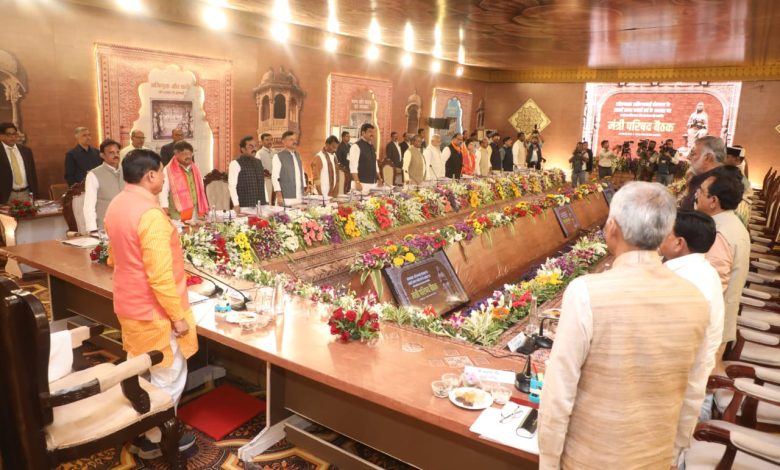 Maheshwar . मध्यप्रदेश के खरगोन जिले के ऐतिहासिक शहर महेश्वर में आज मुख्यमंत्री डॉ. मोहन यादव और उनके मंत्रिमंडल ने लोकमाता देवी अहिल्याबाई होलकर को श्रद्धांजलि अर्पित करते हुए कैबिनेट की विशेष बैठक आयोजित की। यह बैठक महेश्वर के ऐतिहासिक महत्व और देवी अहिल्याबाई के जनहितकारी शासन की प्रेरणा को समर्पित रही।