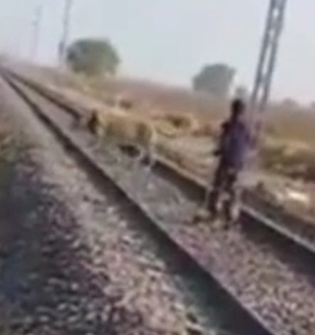 भावनगर । गुजरात के भावनगर जिले में रेलवे ट्रैक पर एक शेर के पहुंचने का वीडियो सोशल मीडिया पर तेजी से वायरल हो रहा है। इस घटना में वन विभाग के एक कर्मचारी ने साहस दिखाते हुए शेर को बिना किसी डर के गाय की तरह हांकते हुए ट्रैक से दूर भगा दिया।
