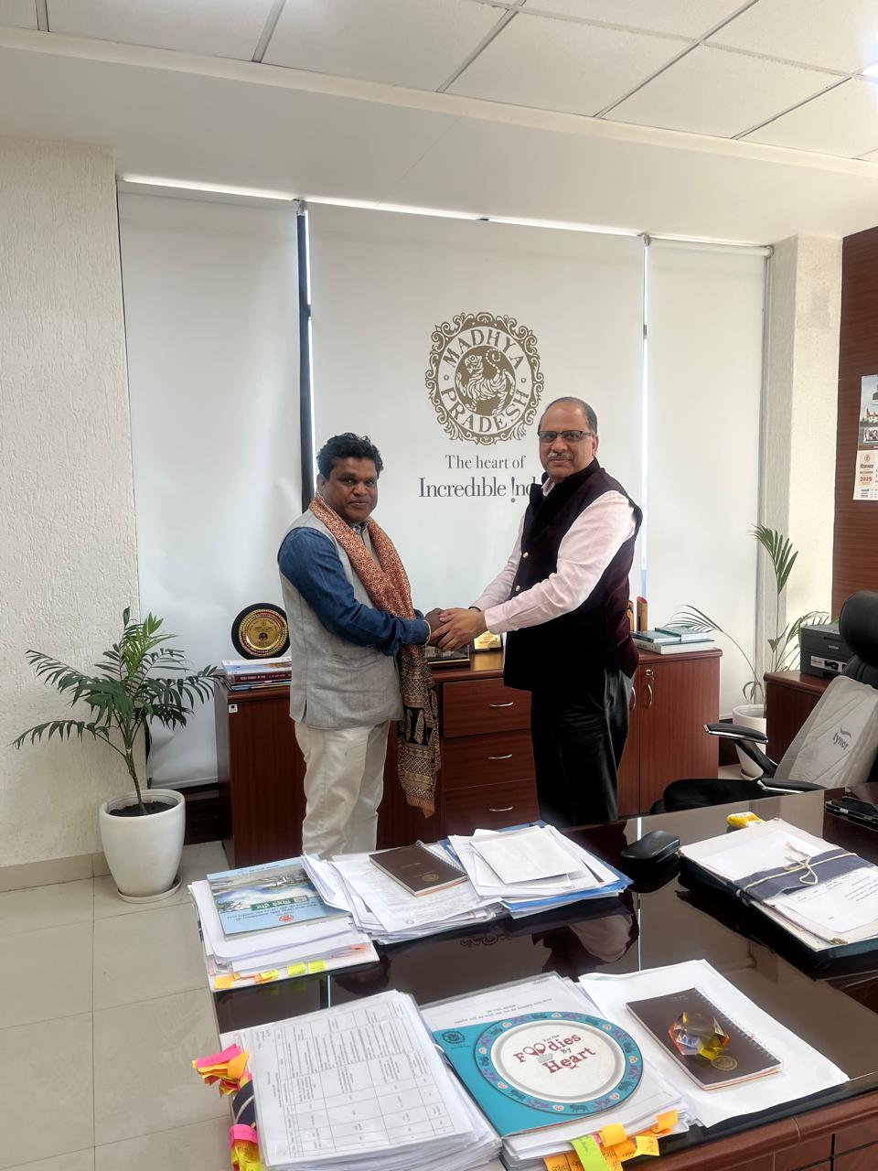 मध्यप्रदेश टूरिज्म बोर्ड में राष्ट्रीय पुरस्कार से सम्मानित शिल्पकार बलदेव वाघमारे का अभिनंदन