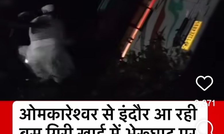 ओंकारेश्वर-इंदौर रूट पर बड़ा हादसा: भेरुघाट में बस 20 फीट गहरी खाई में गिरी, दो महिलाओं की मौत, 30 यात्री घायल
