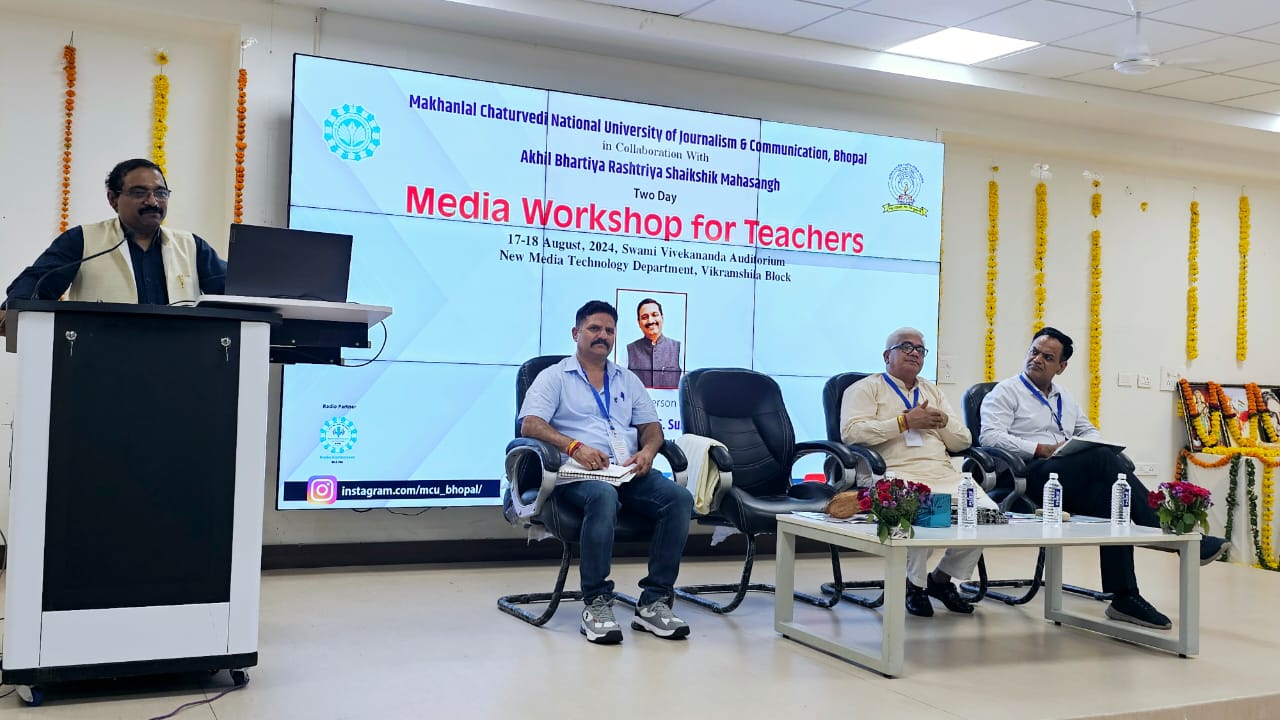 भोपाल: माखनलाल चतुर्वेदी राष्ट्रीय पत्रकारिता एवं जनसंचार विश्वविद्यालय (एमसीयू) ने अखिल भारतीय राष्ट्रीय शैक्षिक महासंघ के सहयोग से मीडिया में फैल रही गलत सूचनाओं से निपटने के लिए शिक्षकों को प्रशिक्षित करने हेतु दो दिवसीय मीडिया साक्षरता कार्यशाला का आयोजन किया। इस कार्यशाला में पूरे भारत से प्राथमिक से लेकर उच्च शिक्षा तक के 60 से अधिक शिक्षक शामिल हुए, जो विश्वविद्यालय के स्वामी विवेकानंद सभागार में एकत्रित हुए थे।