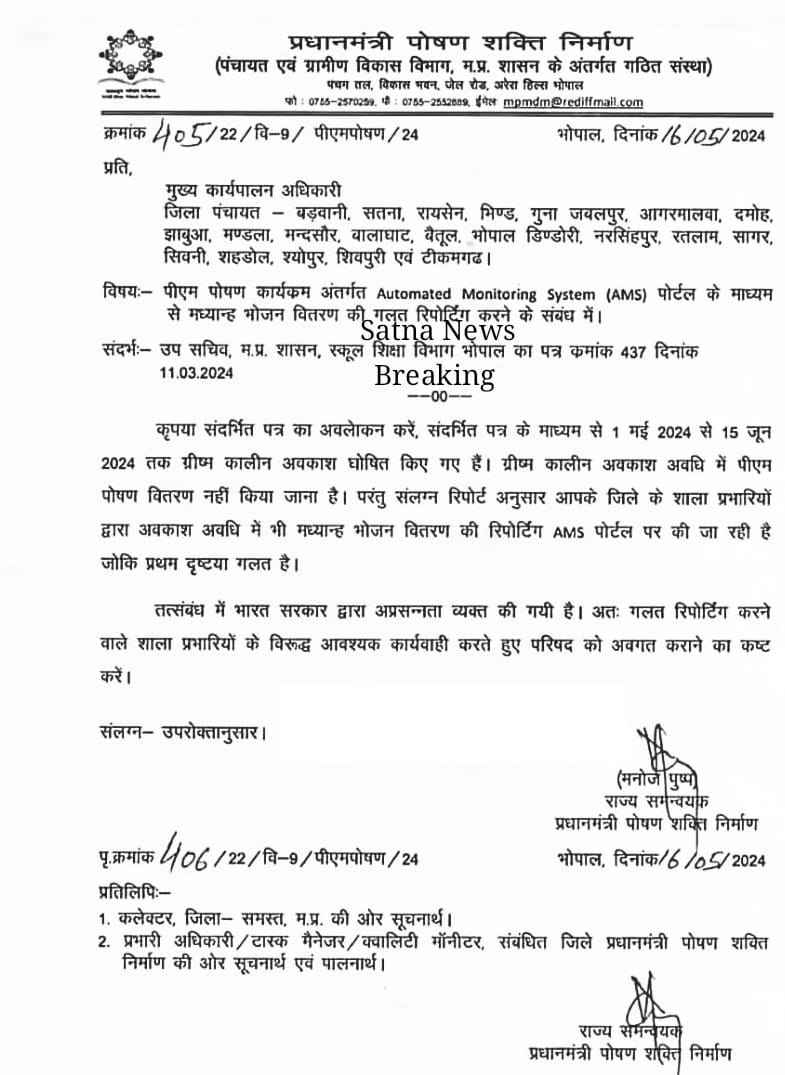 भोपाल । 1 मई से प्रदेश के कई जिलों में सरकारी स्कूलों में मिड डे मील की योजना बदल रही है। इस योजना के तहत छात्रों को दिनभर के भोजन का आवंटन किया जाता है।