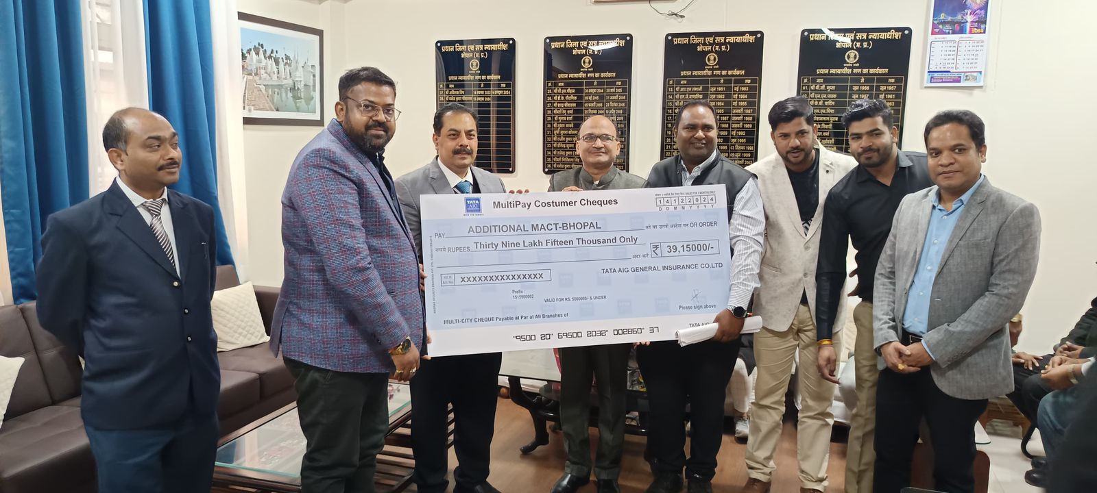 नेशनल लोक अदालत के दौरान एक प्रमुख मामले में ₹39.15 लाख (उन्चालीस लाख पंद्रह हजार) के मुआवजे का समझौता किया गया। मामला बस दुर्घटना से संबंधित था, जो 30 जनवरी 2024 को विंध्याचल ढाबा, चिड़िया टोल के पास हुई थी।