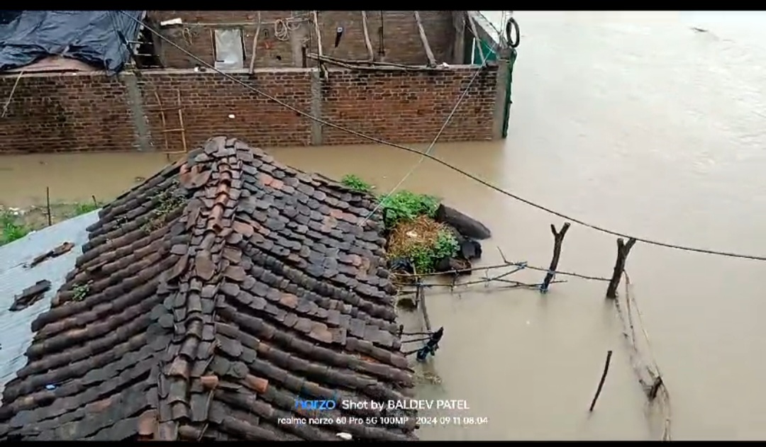 दमोह: पथरिया के खेजरा लखरोनी गांव में बाढ़ से घरों में कैद लोग, चारों ओर पानी