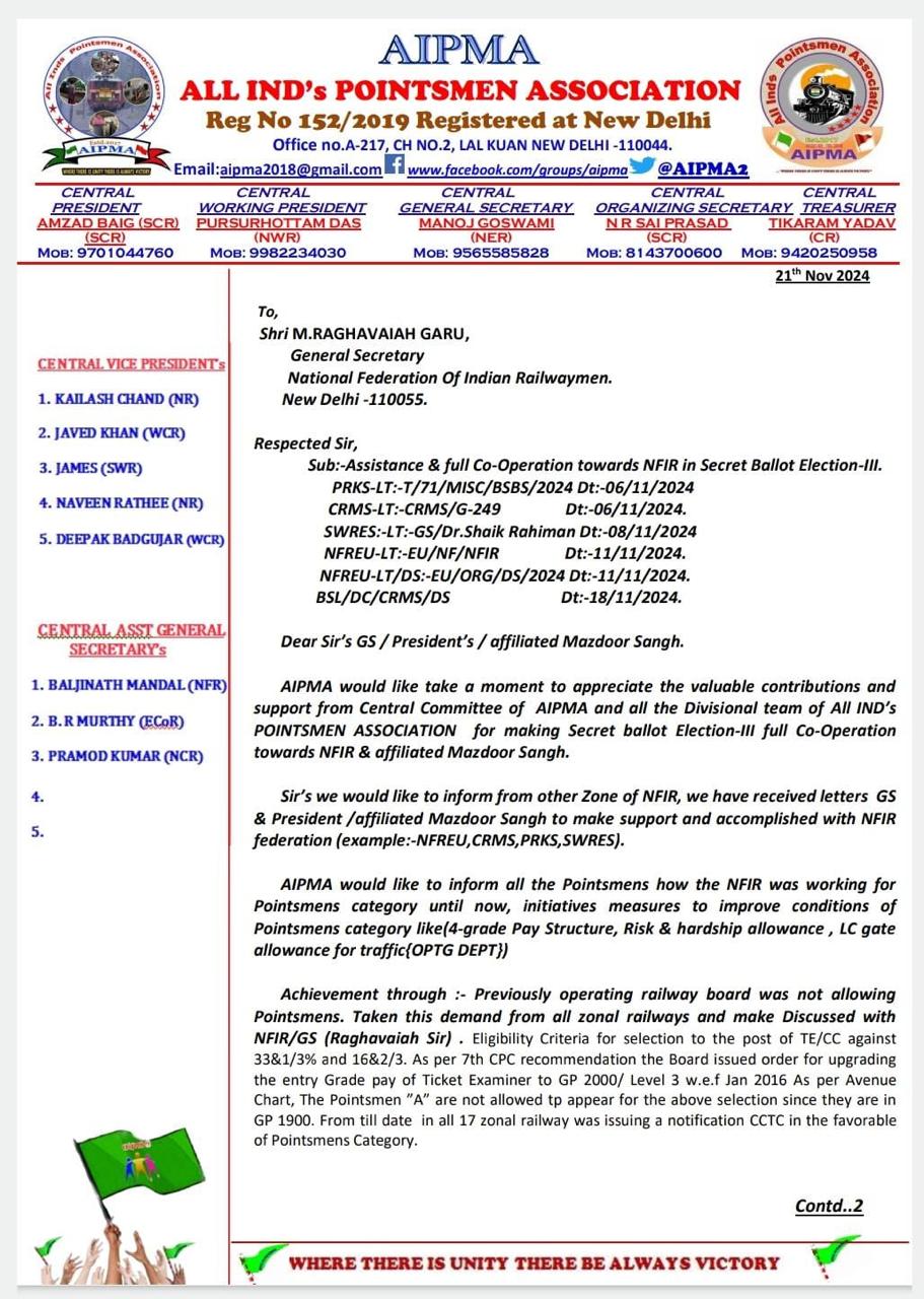 एसोसिएशन ने यह फैसला डॉ. एम. राघवैया और अशोक शर्मा द्वारा पॉइंट्समैन कैडर और रेलवे कर्मचारियों के कल्याण के लिए किए जा रहे निरंतर प्रयासों को ध्यान में रखते हुए लिया है। इसके चलते पश्चिम मध्य रेलवे सहित भारतीय रेलवे के सभी पॉइंट्समैन वेस्ट सेंट्रल रेलवे मजदूर संघ को अपना वोट देंगे।