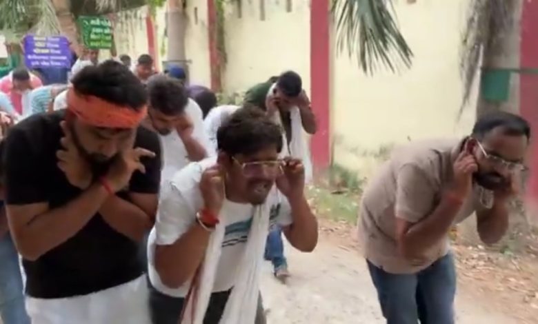 प्रयागराज में डीएलएड (D.El.Ed) प्रशिक्षित अभ्यर्थियों ने अनोखे अंदाज़ में प्रदर्शन कर सरकार का ध्यान आकर्षित करने की कोशिश की। प्रदर्शनकारियों ने ‘मुर्गा’ बनकर विरोध जताया, जिसका वीडियो अब सोशल मीडिया पर जमकर वायरल हो रहा है।