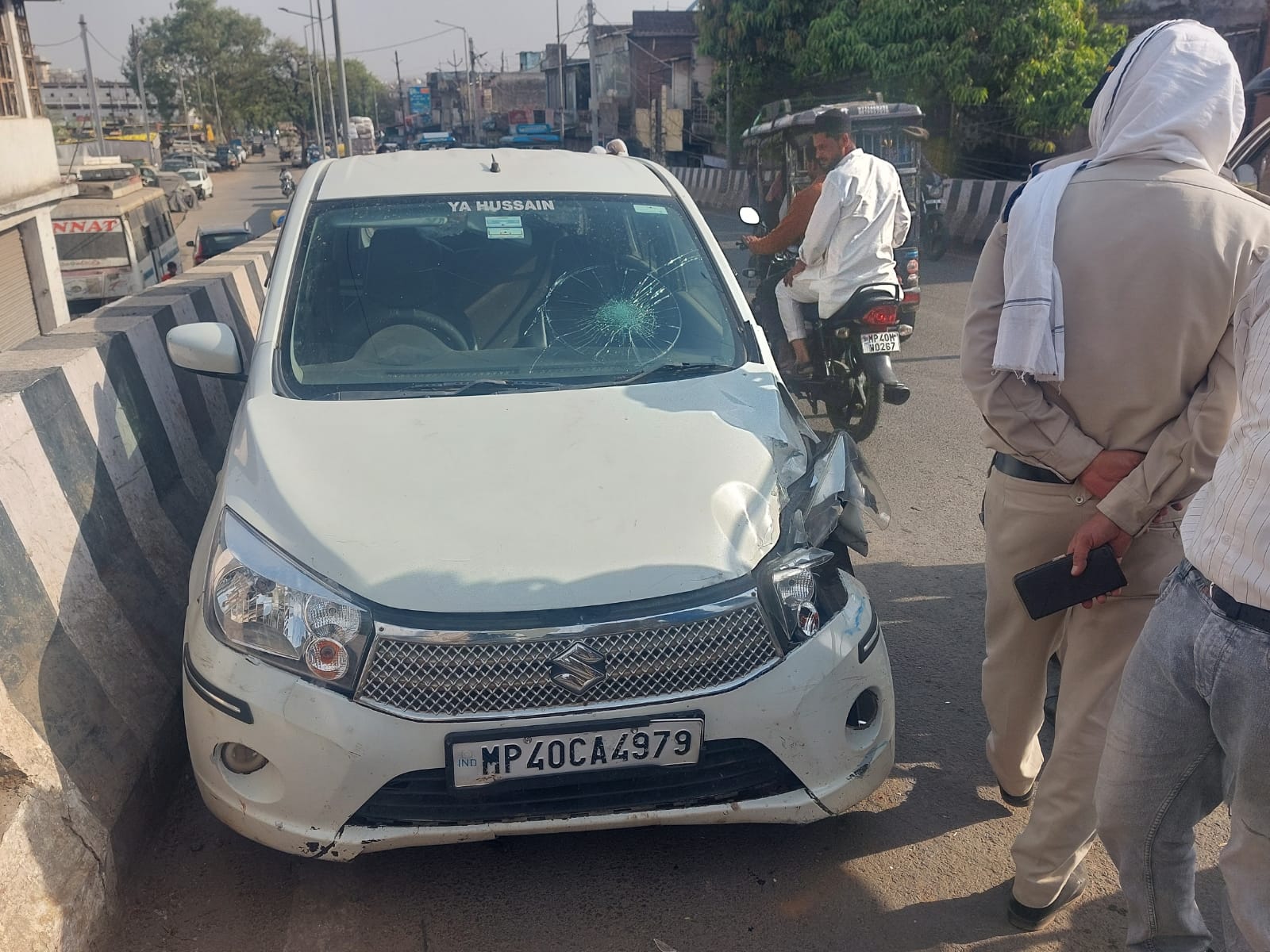 निशातपुरा ब्रिज पर फिर हुआ सड़क हादसा: तेज रफ्तार कार ने बैटरी ऑटो को मारी टक्कर, चार घायल