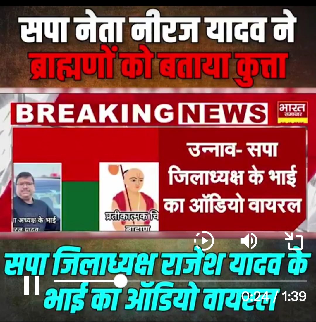 रायबरेली से सामने आया यह मामला सपा में बढ़ते जातीय विभाजन को उजागर कर रहा है। बताया जा रहा है कि सपा जिला अध्यक्ष राजेश यादव का सगा भाई सार्वजनिक रूप से पूर्व विधानसभा अध्यक्ष माता प्रसाद पाण्डेय और वरिष्ठ सपा नेता पवन पाण्डेय को “कुत्ता” कहकर गालियां दे रहा था। सोशल मीडिया पर वायरल वीडियो में यह बयान खुले तौर पर ब्राह्मण समाज का अपमान करता नजर आता है।