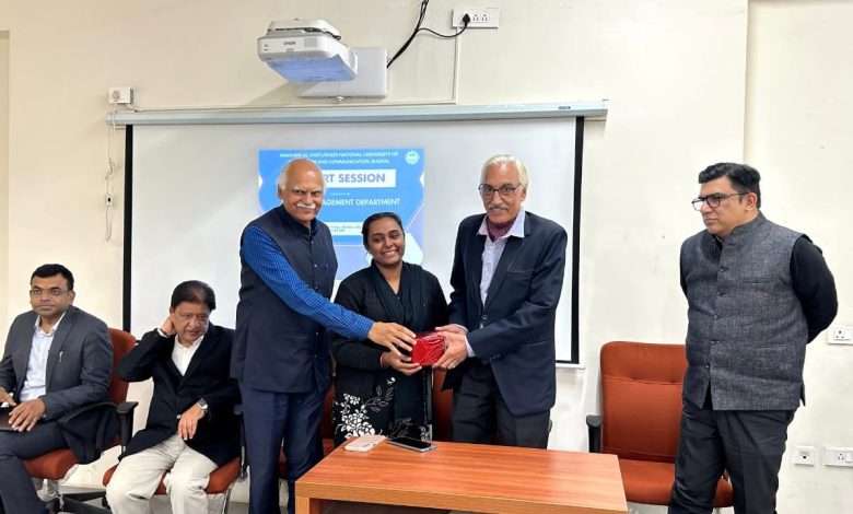 भोपाल। माखनलाल चतुर्वेदी राष्ट्रीय पत्रकारिता एवं संचार विश्वविद्यालय (एमसीयू) के मीडिया प्रबंधन विभाग में “हैप्पीनेस इज़ अ चॉइस” विषय पर एक प्रेरणादायी विशेष सत्र आयोजित किया गया। कार्यक्रम में मीडिया, प्रबंधन और जनसंपर्क जगत की प्रतिष्ठित हस्तियों ने विद्यार्थियों को सकारात्मकता, नेतृत्व और करियर विकास से जुड़े महत्वपूर्ण सुझाव दिए।