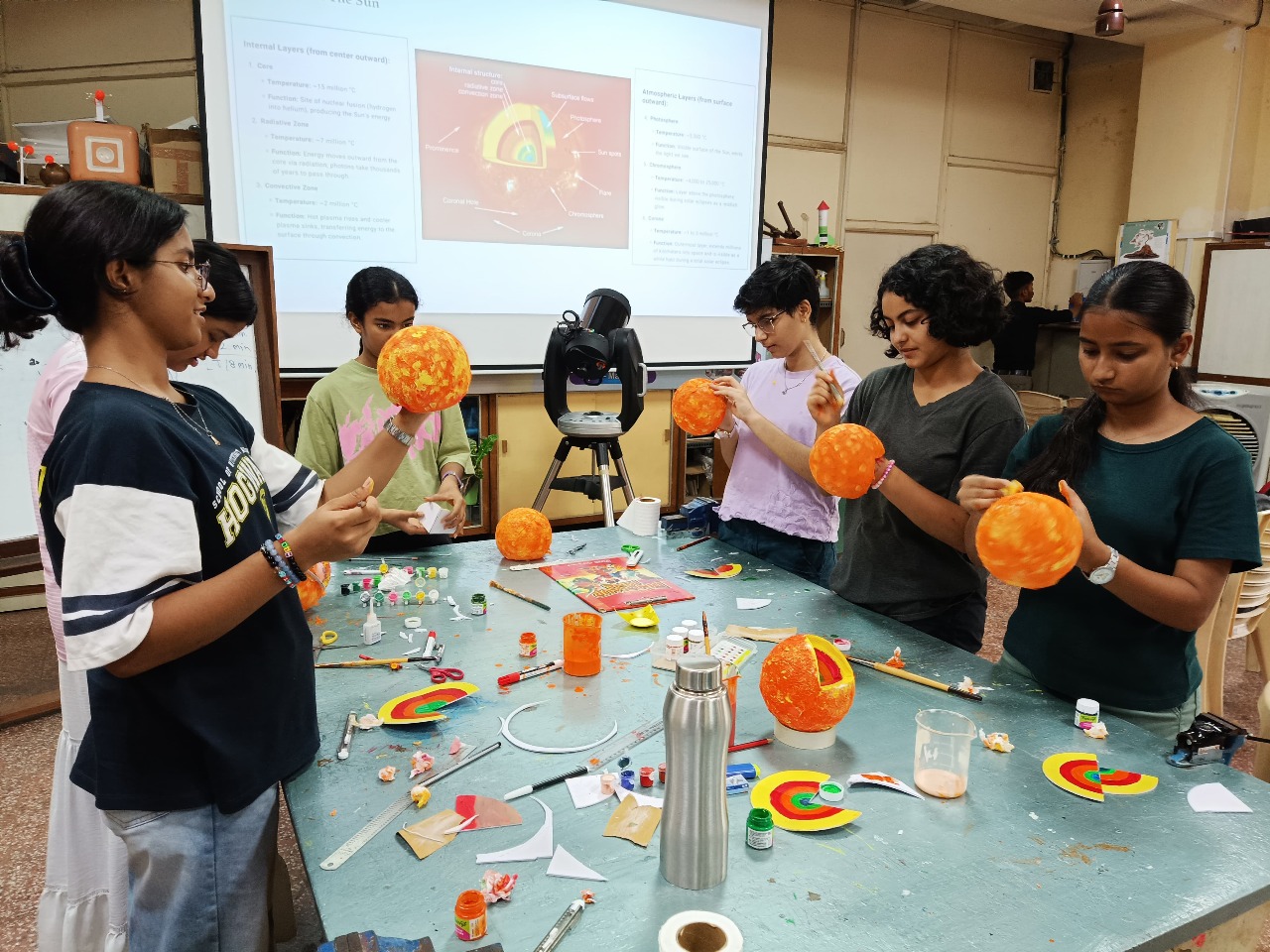 इस कार्यशाला में छात्रों ने न केवल अवलोकन किया बल्कि विज्ञान को रचनात्मक तरीके से भी समझा। उन्होंने पिनहोल कैमरा, सूर्यघड़ी, और सूर्य का त्रिआयामी मॉडल (3D Model) भी स्वयं तैयार किया। इन गतिविधियों के ज़रिए छात्रों को यह सीखने का अवसर मिला कि कैसे सरल उपकरणों से जटिल खगोलीय घटनाओं को समझा जा सकता है।