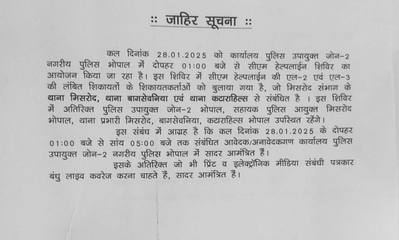 भोपाल। लोक परिवहन चालकों और परिचालकों के लिए एक विशेष प्रशिक्षण कार्यक्रम का आयोजन 28 जनवरी 2025 को किया जाएगा। यह कार्यक्रम सुबह 10:30 बजे से शुरू होगा। इस प्रशिक्षण में एडिशनल डीजीपी (PTRI) श्री संजीव समी और अन्य वरिष्ठ पुलिस अधिकारी उपस्थित रहेंगे।
