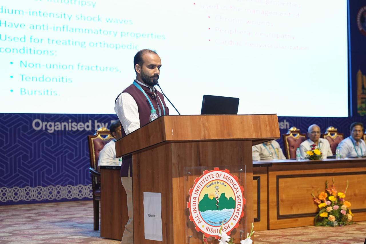 एम्स भोपाल के कार्यपालक निदेशक प्रो. (डॉ.) अजय सिंह के नेतृत्व में संस्थान में ज्ञान-विनिमय और शोध-प्रेरित शिक्षा का वातावरण सतत प्रोत्साहित किया जा रहा है। इसी दिशा में आगे बढ़ते हुए, यूरोलॉजी विभाग के एसोसिएट प्रोफेसर डॉ. केतन मेहरा ने सम्मेलन में “शॉकवेव्स इन इरेक्टाइल डिस्फंक्शन” विषय पर अत्यंत प्रभावशाली वैज्ञानिक प्रस्तुति दी। इस विषय में उन्होंने पुरुष स्वास्थ्य से जुड़ी नई उपचारात्मक तकनीकों पर प्रकाश डाला, जो वर्तमान में यूरोलॉजी में एक प्रमुख नवाचार मानी जा रही हैं।