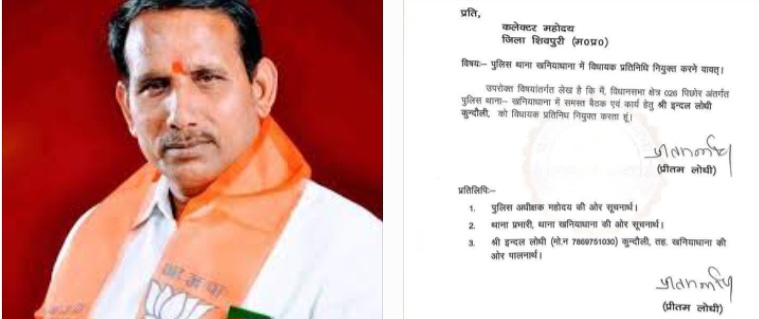 शिवपुरी, । मध्य प्रदेश में एक अनोखा और विवादास्पद मामला सामने आया है। पिछोर से बीजेपी विधायक ने थानों में “विधायक प्रतिनिधि” नियुक्त करने के लिए शिवपुरी कलेक्टर को पत्र लिखा है। यह सिफारिश न केवल प्रदेश में, बल्कि पूरे देश में पहली बार चर्चा का विषय बनी है।