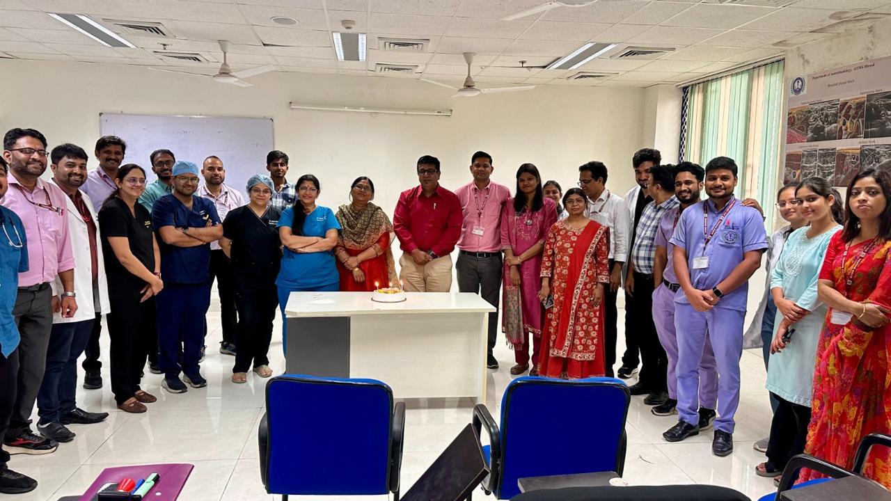 भोपाल । एम्स में वर्ल्ड एनेस्थीसिया डे 2025 बड़े उत्साह के साथ मनाया गया। इस अवसर पर ट्रॉमा एवं इमरजेंसी मेडिसिन विभाग और एनेस्थीसियोलॉजी विभाग द्वारा संयुक्त रूप से एक विशेष कार्यक्रम आयोजित किया गया, जिसमें फैकल्टी सदस्यों, पोस्टग्रेजुएट विद्यार्थियों, रेजिडेंट डॉक्टरों और नर्सिंग अधिकारियों ने सक्रिय रूप से भाग लिया।