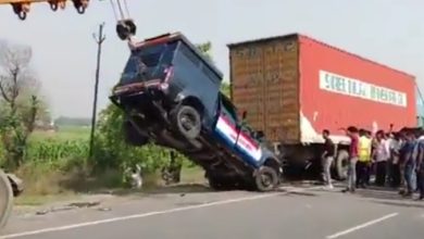 उत्तर प्रदेश के अलीगढ़ में दर्दनाक सड़क हादसा: पुलिस की गाड़ी खड़े कैंटर से टकराई, चार लोगों की मौत
